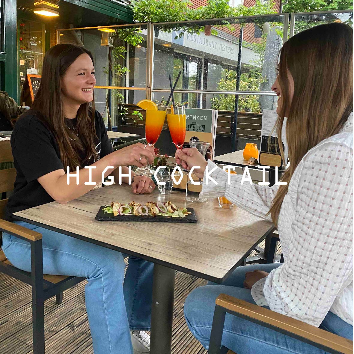 Onze high cocktail bestaat uit 4 verschillende cocktails per persoon. De cocktails zijn iets kleiner van formaat en worden geserveerd met bijpassende hapjes. Heel leuk om te doen als uitje met je vriendengroep, studievereniging of als date!